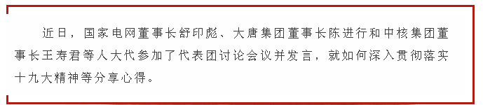 “總書記的報告為國家電網公司工作提供了根本遵循,報告中關于能源電力發展、國有企業改革等重要論述,指明了公司努力的方向。公司將以報告精神為指導,堅定信心和決心,努力在偉大征程中當先鋒、做表率。”他表示,我們將緊密團結在以習近平同志為核心的黨中央周圍,以奮發有為的精神狀態,埋頭苦干、勇于創新、求真務實,爭當模范踐行“四個意識”的表率、忠誠干凈擔當的表率、貫徹中央決策部署的表率,把國家電網公司做強做優做大,發揮央企“六個力量”作用,為實現“兩個一百年”奮斗目標多作貢獻。