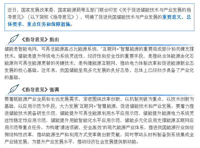 國(guó)家發(fā)展改革委、國(guó)家能源局等五部門聯(lián)合印發(fā)《關(guān)于促進(jìn)儲(chǔ)能技術(shù)與產(chǎn)業(yè)發(fā)展的指導(dǎo)意見》