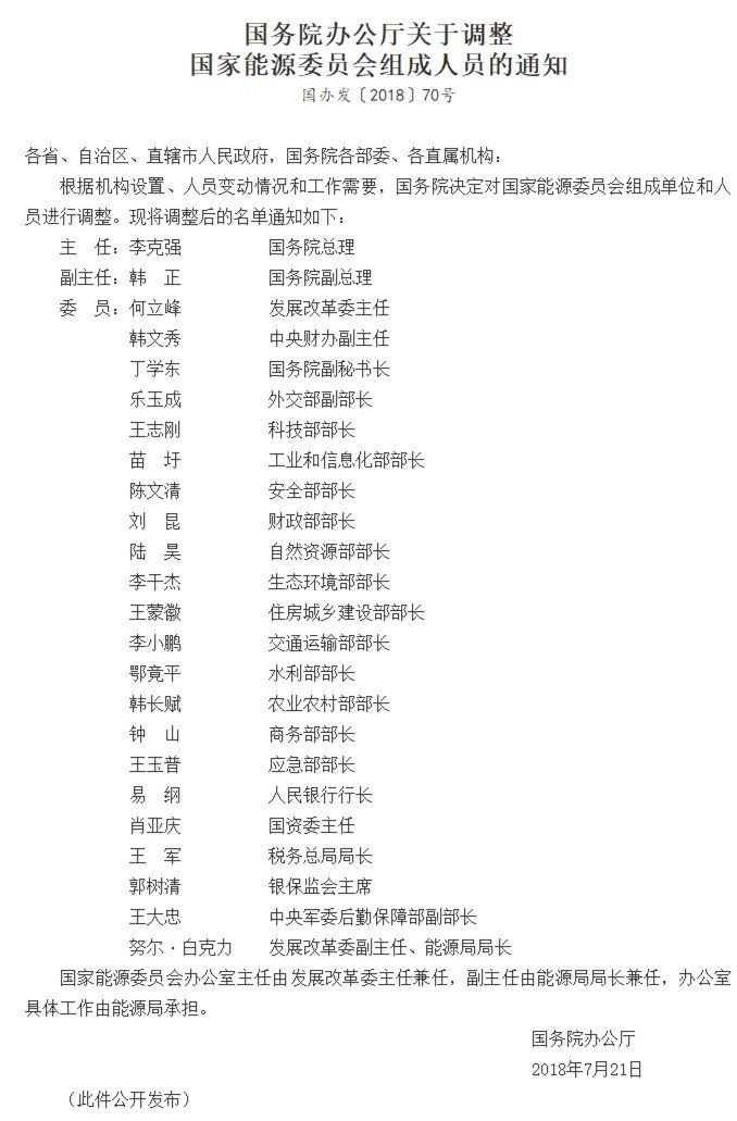 ?中國最高規(guī)格能源管理機構——國家能源委員會迎來自2010年成立以來的第四次內(nèi)部調(diào)整。此番調(diào)整后,國家能源委員會由24人組成,國務院總理李克強擔任委員會主任,國務院副總理韓正擔任副主任,另有來自國務院各部委、直屬機構、中央財辦、中央軍委等的22名委員。